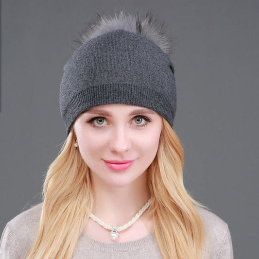 Beanie Hat with Fur Pom Pom